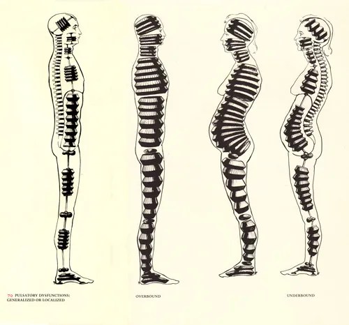 I vores fysiske krop er vi f.eks. hele tiden lidt overspændt nogle steder, lidt underspændte andre steder. Når vi ét sted er underspændte eller slappe, kompenserer kroppen ved at overspænde andre steder. Over tid sætter det sig, som et mønster, en kropsholdning, et udtryk. Sådan er det med vores muskler, vores (binde)væv, vores nervesystem. Vores liv er en formativ, organiserende proces, som sætter sig i vores krop.